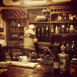 Ymir Hotel proprietor mixing our chosen poisons.